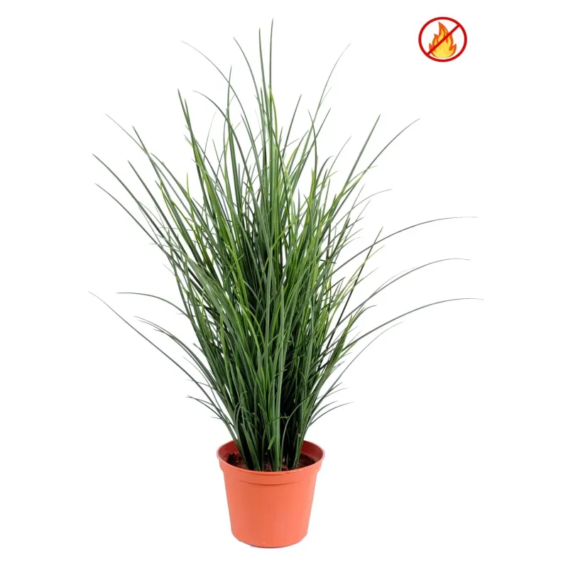 Gras Fine Topf Von - Fire Resistant Artificial, bestehend aus 1 Mittelpfahl und 8 kleinen Pfählen, an der Basis ein PvcTopf mit einem Durchmesser von 12cm und einer Höhe von 10cm. Geeignet für den Außenbereich. Diese Referenz 23474 71DE, Fire Resistant oder feuerhemmend, hat gemäß dem Test, der der Norm In 13501 1 :2018 entspricht, eine Einstufung von Bs3,d0 erhalten, wie im Dokument Nr. SDFS2406004560FF der Kontrollgesellschaft Sgs vom 9. Juli 2024 bestätigt wird.